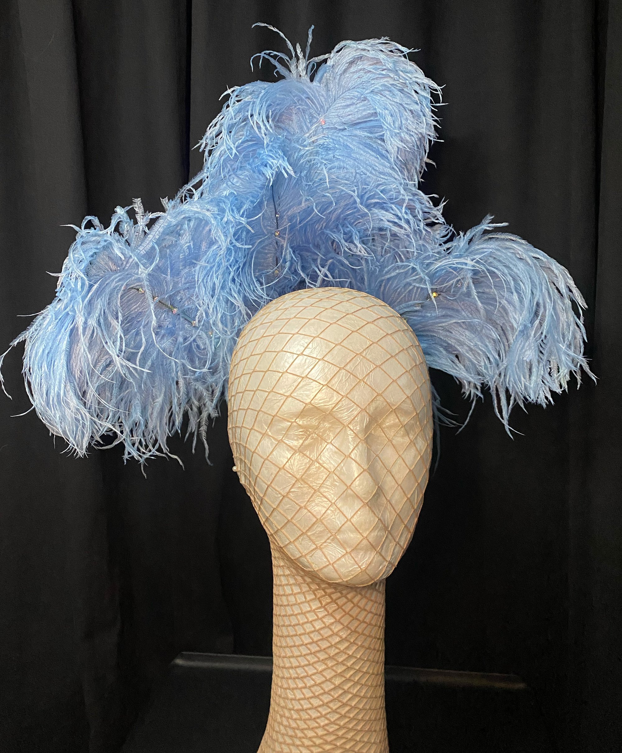 12 high by 14 inches wide. Rhinestoned ostrich feathers.